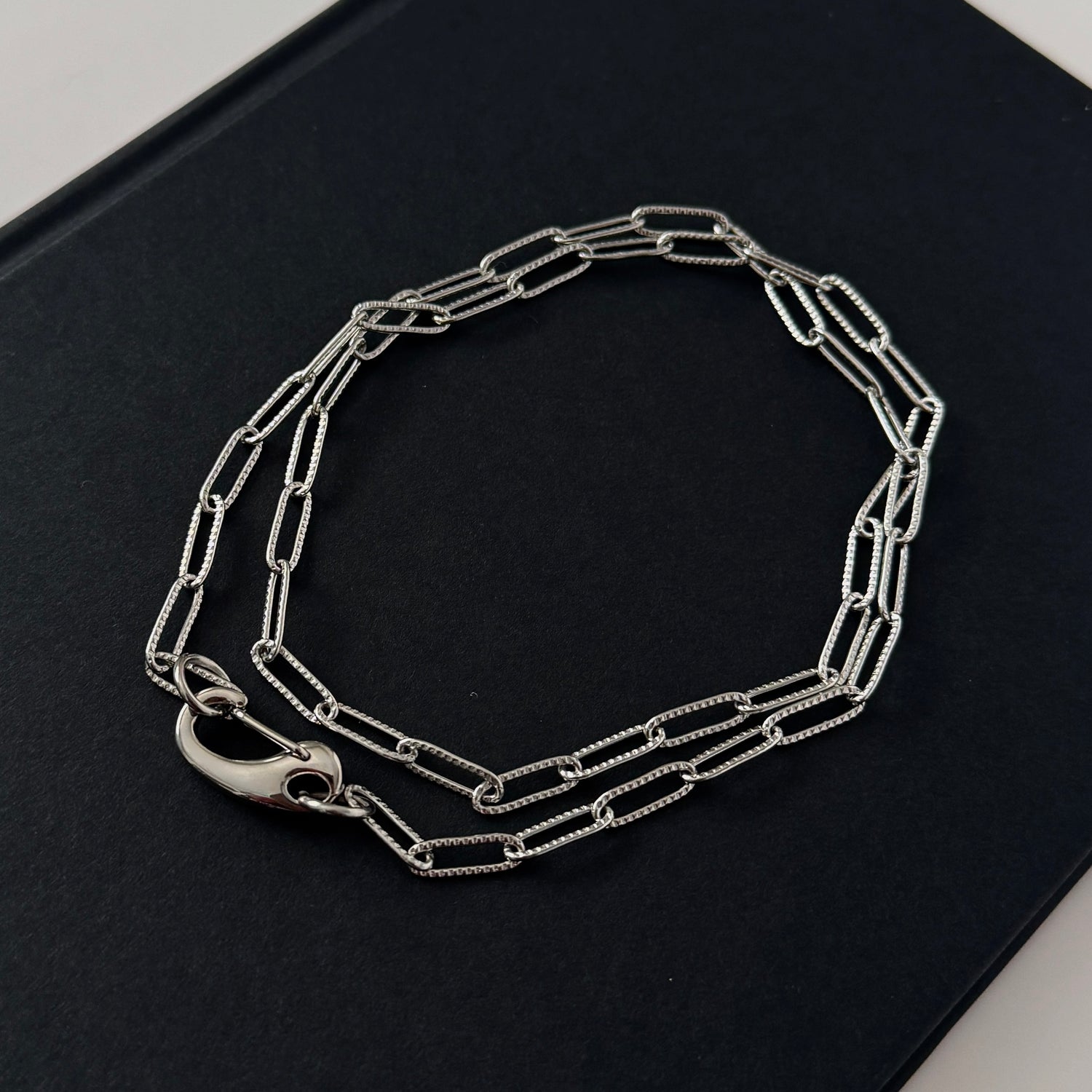 Elevate your everyday style with this silver chain necklace. Featuring elongated links and a sleek clasp detail, it brings effortless sophistication to any look. Designed for versatility, it pairs beautifully with other pieces or stands elegantly on its own.